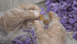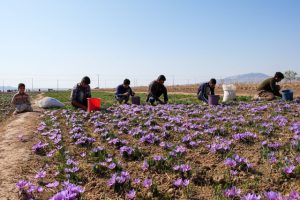 باید گل زعفران قبل از طلوع خورشید برداشت شود که اگر نور خورشید به آن برسد از میزان عطر و بوی آن کاسته می شود که ما این پروسه را به نحوه احسنت مدیریت کرده و قبل از طلوع افتاب مقداری که ابیاری شده و گل داده است را برداشت کرده تا از کیفیت ان کاسته نشود . در مدت زمان تعیین شده تمام کار بصورت دستی و با کارگران ماهر و با تجربه انجام می شود حدودا می توان گفت که برای برداشت یک هکتار گل زعفران نیاز به چهل کارگر و برای پَر کردن ان نیز نیاز به صد کارگر است . کل کارگرانی که در این زمینه فعالیت دارند کارگران فصلی می باشند .